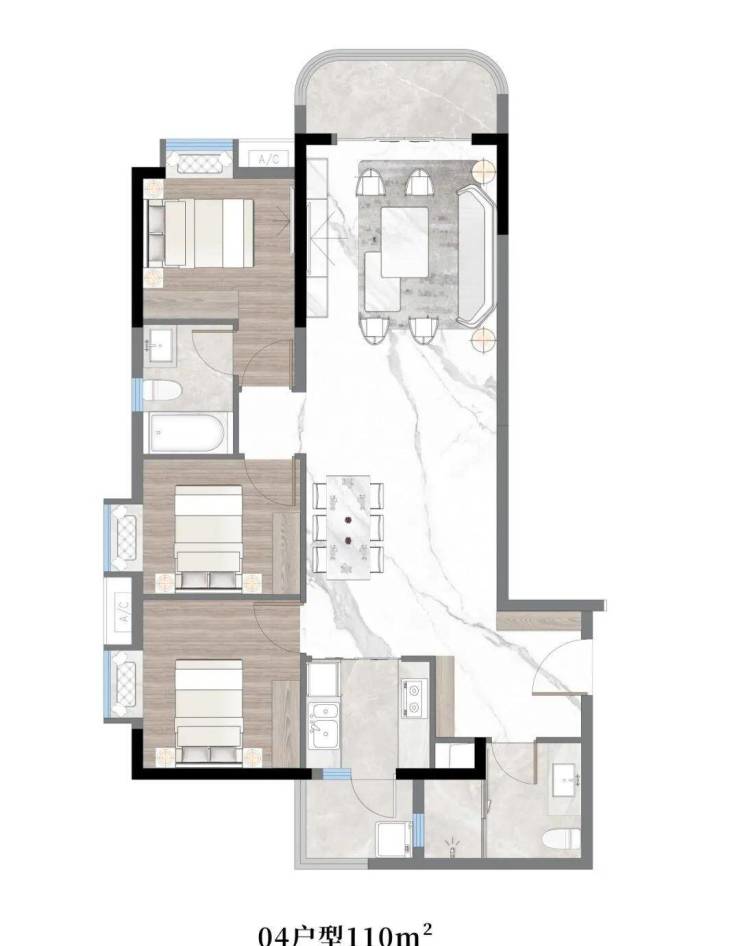 【主推户型】:78㎡、86㎡、91㎡、101㎡、110㎡两房~三房