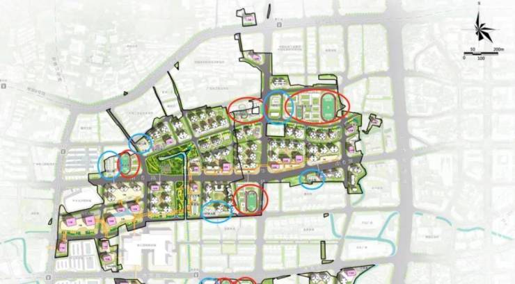 比起现状大片大片的村屋握手楼,是要好看得多的,撑起中轴封面。