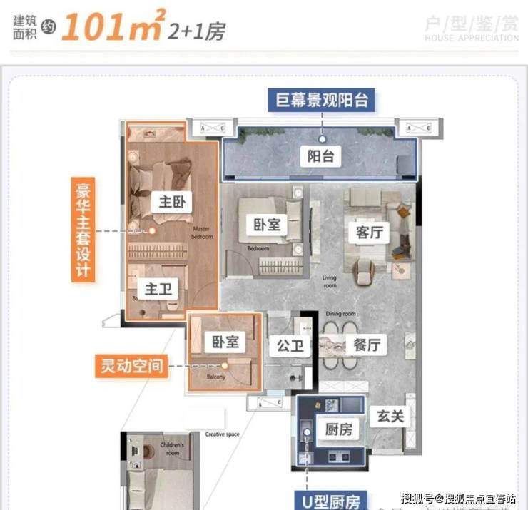 建面101平三房,经典竖厅设计,全屋动静分离,宽景大阳台,主卧套房。