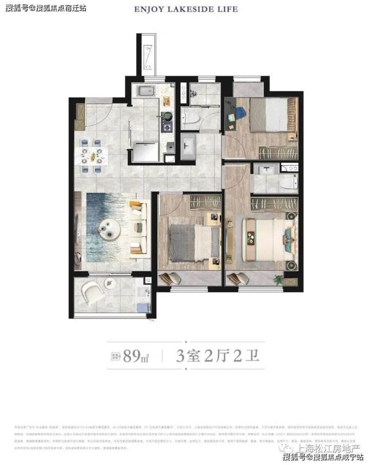 89平样板房照片 三房两厅1.5卫