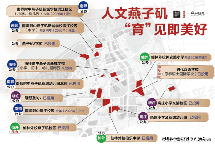 教育上引入南师、仙外、晓庄三大教育品牌,并集齐公办、民办、国际教育多张名片,燕子矶老镇、体育公园、新城综合医院等重大项目加快建设,3条地铁9个站点轨交出行全覆盖