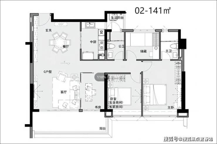 “舒适尺度” 6-7米双联阳台,格局方正实用,动静分区,其中02户型带双阳台,05户型主卧270°飘窗