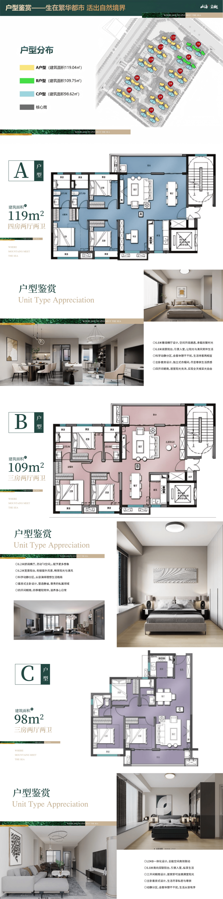 面积区间:约98-123m2(三至四房