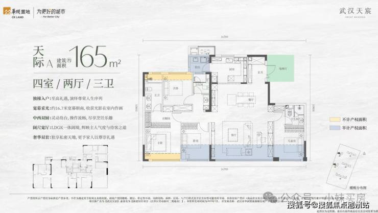 武汉天宸(江岸-二七),加推建面约165㎡带装修小高层。另有少量建面约124、143㎡高层在售。