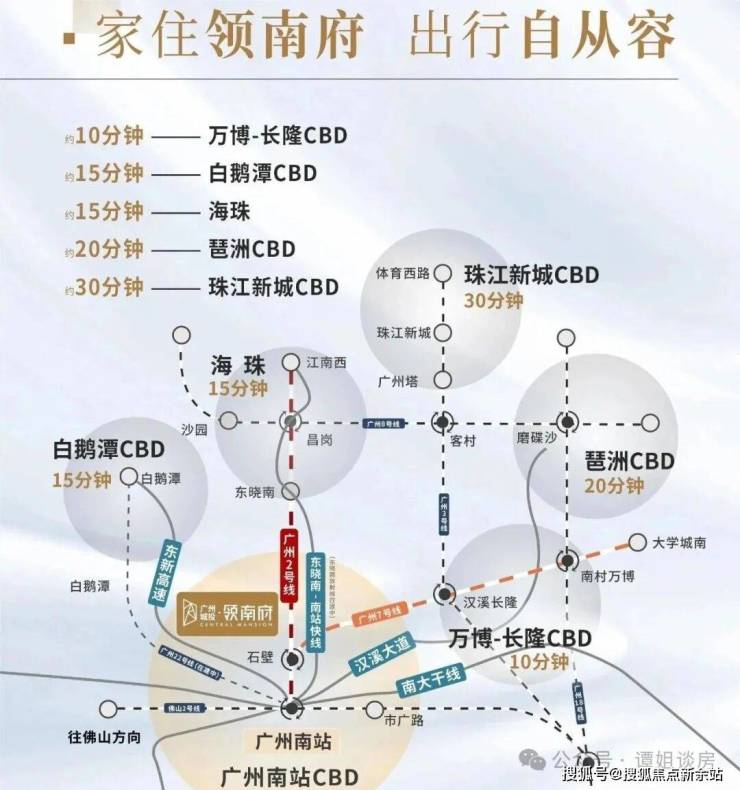 一条汉溪大道,串联南站商圈、江南西商圈、汉溪长隆商圈、珠江新城CBD、琶洲CBD和万博商圈,城市繁华便捷可享。