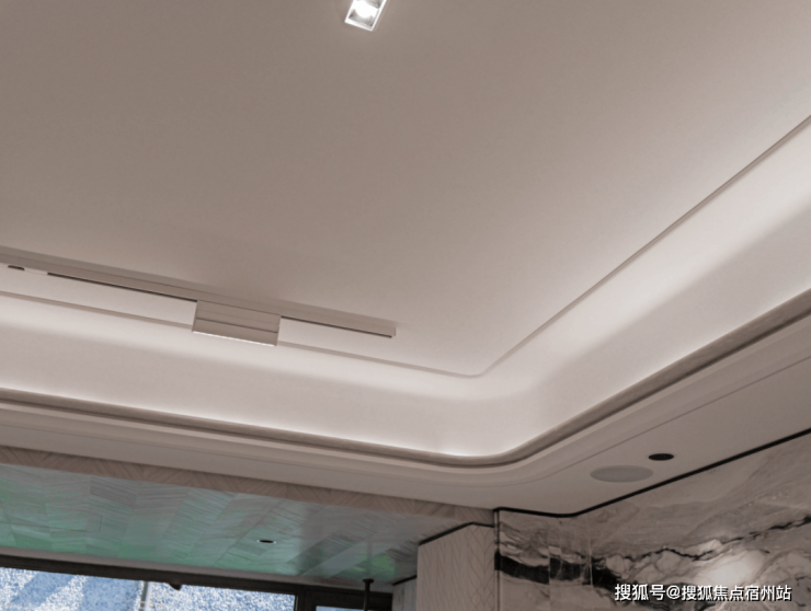 除此之外,在细节方面,项目也是不遗余力:比如, 全屋智能 也同样是交付标准,大量场景预设,让科技改变生活,值得一提的是,这一次项目更是设置了多个 智能吸顶音响 :