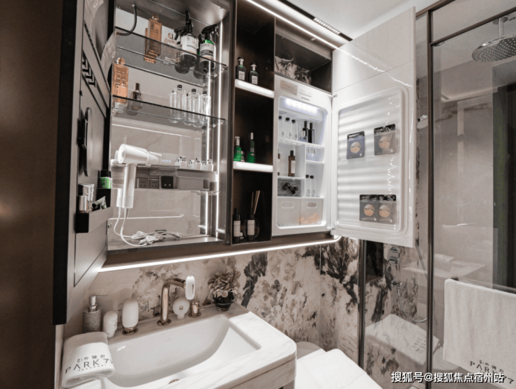 主卫方面,保利也是始终贯彻着 “女性友好” :小户型配置 科勒美颜三件套 ,大户型则升级为 五件套 ,包括了冲牙器、除氯等等,美妆冰箱也同样是标配。