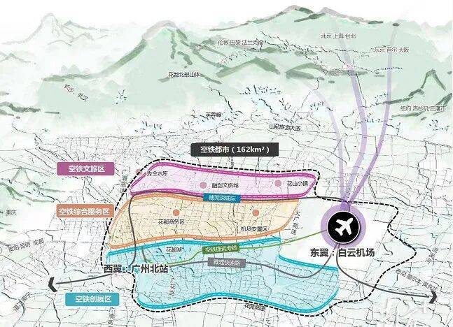 作为湾区最大的世界级空铁联运枢纽+湾区通往世界的窗口,花都广州北枢纽+空铁联运+广北CBD三大能级联动,推动城市发展向前,释放广州北巨大经济效应。——《广州市花都区国民经济和社会发展第十四个五年规划和二〇三五年远景目标纲要》,十四五”时期,花都将重点建设“三大枢纽”——大湾区北部国际消费枢纽、大湾区北部国际旅游枢纽、国际航空物流枢纽。