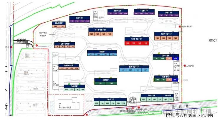 项目规划18栋,5到11层共8栋, 其他16至 17层,小高17层是2梯两户,