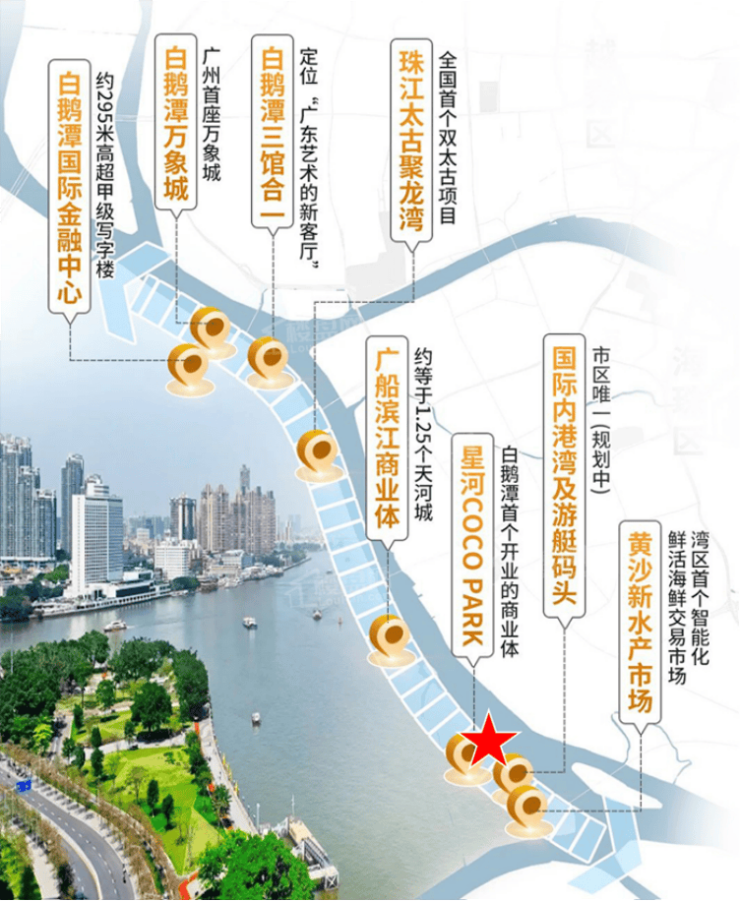 保利珠江天悦坐拥广州市区内唯一港湾游艇码头、产业综合体、购物中心、展览中心、写字楼和五星级港湾酒店等高端配套。