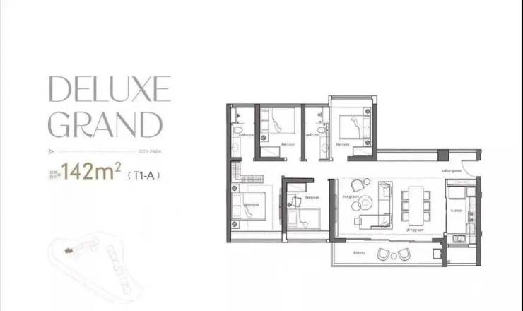 极致户型更新塔尖体验建面约142-208㎡大平层实现了视野、尺度、交标上的三重突破。