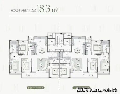 这一户型是4房3卫设计,户型格局上与上个户型比较相似,不过功能性和舒适性有提升!空间上来看,南向有两个套房,次卧是暗卫。北面多了一个家政间,生活比较便捷!