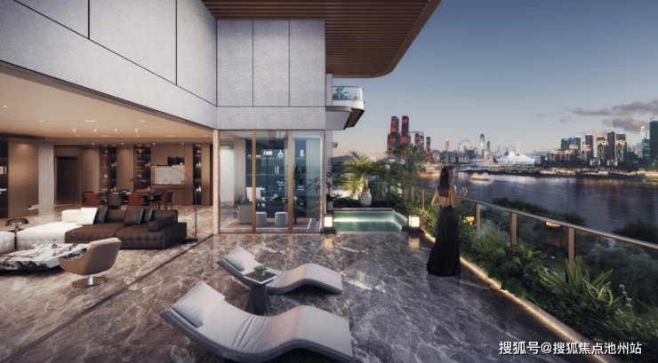 建面约140㎡户型,打破传统尺度,以约3.3米阔绰层高纳藏奢雅人生;以1梯1户尊崇配置,给予城市峰层生活至高礼遇;约8.2米奢阔横厅,气派社交聚场,彰显主人会客之道;约40㎡空中庭院,约6.6米开阔挑高,搭配约270°景观头等舱,IMAX级视野与私密性完美平衡,将“江景博物馆+城景瞭望塔”双重身份集于一体,让阳光与江风成为庭院里流动的风景,重新定义塔尖生活的标准。