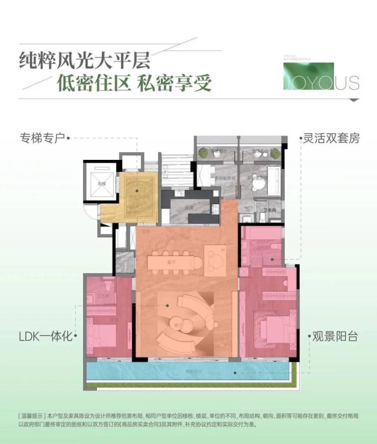 专梯专户,双主套大宅,三代同堂优选,为家人提供互相尊重的生活提案