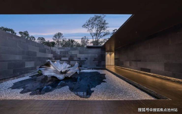 在绿城·义乌凤栖逸庐示范区中,尽享尊贵与宁静体验于一身。约30米宽、8.8米高的门头采用伊朗白雪公主奢石,采用独创“三维定位切割法”,历时约800小时的精密作业,做的精益求精;门头奢阔姿态下,通过将墨玉、青玉和白玉和星空的元素植入更显隐逸质感,粗看如墨玉青石,细观精工的星雨光影,形成别样特殊的美感;门庭空间通过约80年赤松阵列导引,经由486片白雪公主玉石组成的朦胧廊道,到达以艺术雕塑为主题的前场主庭院,过程中模拟禅意山水,以内敛为准绳,创造“园中院、院中园”的东方游园体验,复刻“豁然开朗”的归家意境。