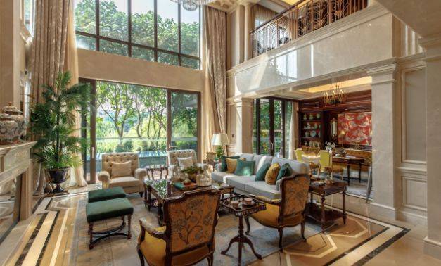 进门即见挑高超6米的中空客厅,恢弘尺度尽显主人气派。同时,首层还贴心配置一间套房,可作为长辈房或客房使用,实现全龄友好居住。户外花园面积达120–200㎡,业主可根据个人喜好打造私家花园、小型泳池或户外茶室,将自然引入生活日常。