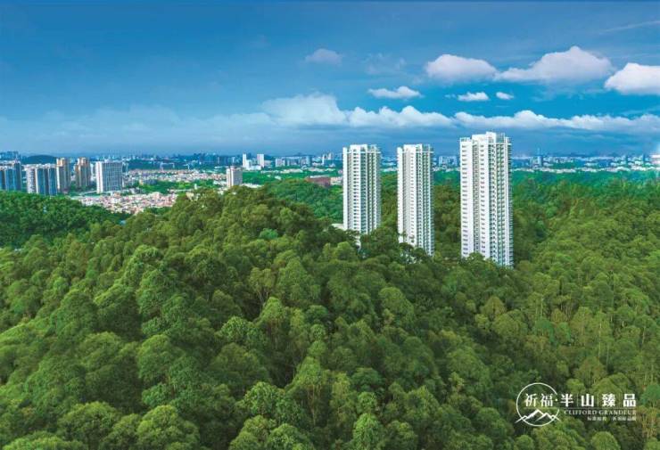 【祈福半山臻品】位于祈福新邨内,是祈福新邨最后住宅组团,由3栋楼组成,栋栋间距开阔近百米,视野无遮无挡!半山之上,推窗见林,环境优美,鲜氧环绕;南瞰9000亩大夫山多重山脉,尽揽600亩祈福湖、祈福大城风光+广州繁华都市!