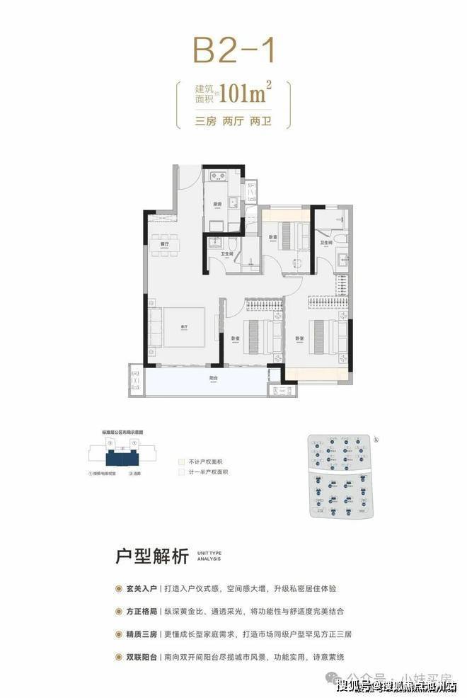 高层建面约102平三房(与前期101平户型格局一样),不仅有四新同面积段没有的独立玄关+衣帽间,实得面积、功能上基本吊打同片区建面约110-120平的户型。