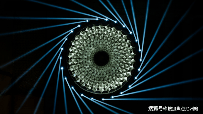 招商序将这种对先锋审美的追求,延续到了约42m宽、4.8m市政界面高度的仪式门厅,更由造价约200万的「栖心之巢」挺拔立起,师法“苏扇开阖”的非遗灵感,打造了金属苏扇艺术装置门庭。