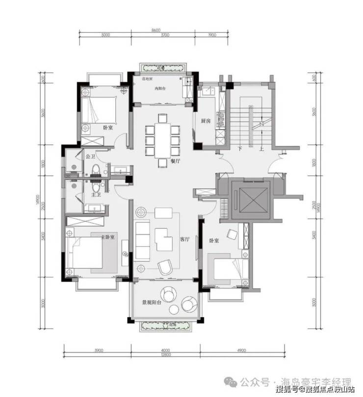 2、B户型:建筑面积约120平方米三房两厅两卫