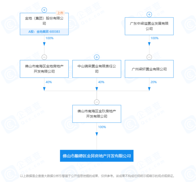 根据公示可知,该项目申请单位为佛山市顺德区金昇房地产开发有限公司,通过企查查获悉,公司的股东除金地外,还有中南锦时和中梁,其中金地和中南锦时分别占股40%,中梁占股20%。
