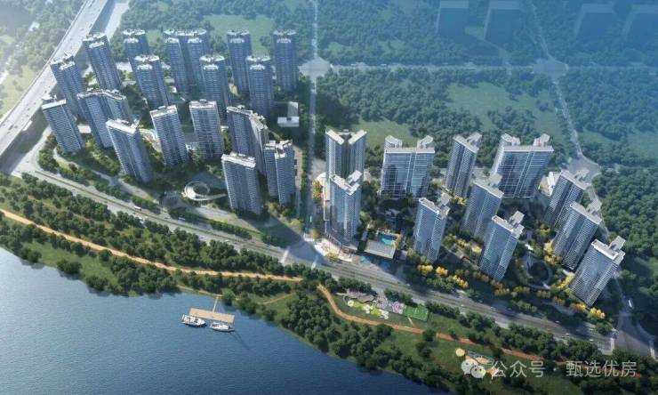 环抱式亲江布局 地势抬高 3 米实现户户朝南 江景环绕在家也坐拥 270° 无边界巨幕江景