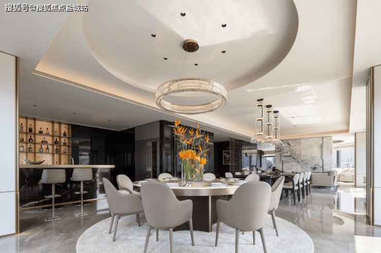 同时打破固有模块化布局,将客厅、餐厅、书房、阳台整体打造成联通又可随意调整的百变空间,让都市新贵无拘的想法能够一一实现。