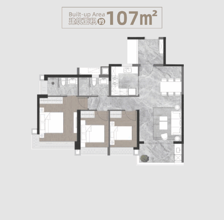 项目体量不算大,一共是栋34-39层高层住宅,其中3栋村民的安置房、1栋政府安置房,只剩2栋商品房,户型涵盖了93-132㎡三至四房