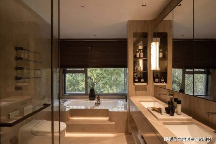 很多人会想当然把绿色低碳简单理解为“节能”,也不能说错,但是不全面。这一项的内容挺多,比如嵩雲序做了零冷水系统,通过加装循环回水管实现洗漱、洗浴“零冷水”,大大提升生活体验;比如马桶和水盆全部做墙排(区别于地排),从此洗手间拖地再也不用围着马桶底座挥洒汗水了;比如通过设置淋浴区地漏补水,以达到干区地漏防臭的目的,不得不佩服嵩雲序的巧思妙想……