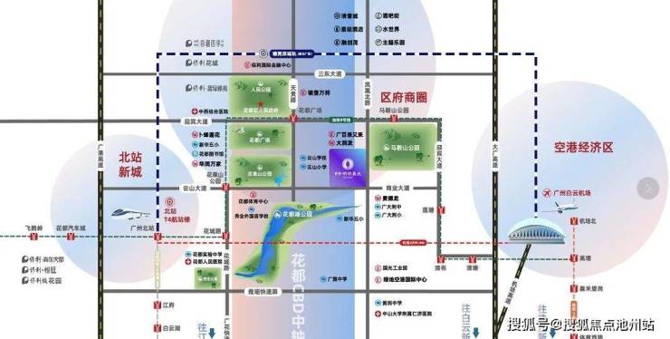项目位于花都区府中轴线上,花都中轴线CBD是政府投资100亿打造的中轴线CBD,未来将是花都的金融中心,媲美广州的珠江新城。同时受空港经济区+广州北站“两大空铁联运”综合枢纽的双重辐射。从珠江新城物业的升值曲线来看,中轴线物业,是财富升值的头等舱。