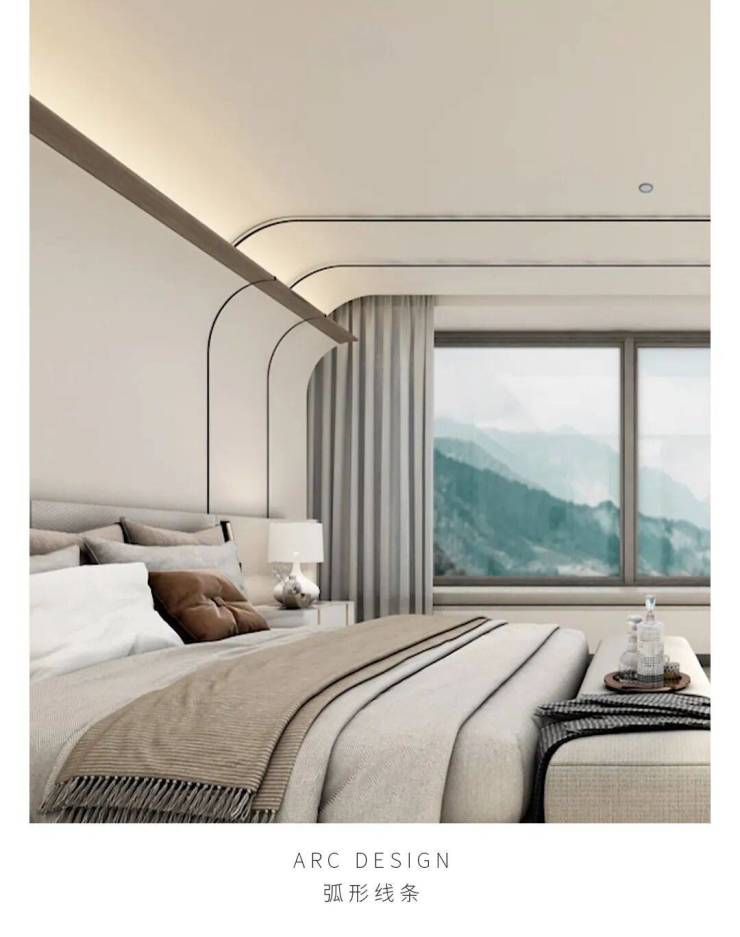 室内很多细节都有弧形元素,比如弧形玄关、圆角岛台、卧室弧形线条设计等,虽然这样的设计成本更高、耗材更多,但这样做不单增加了空间流动感,还体现了对生活细节的精心打磨,为业主营造了优雅从容的生活场域。