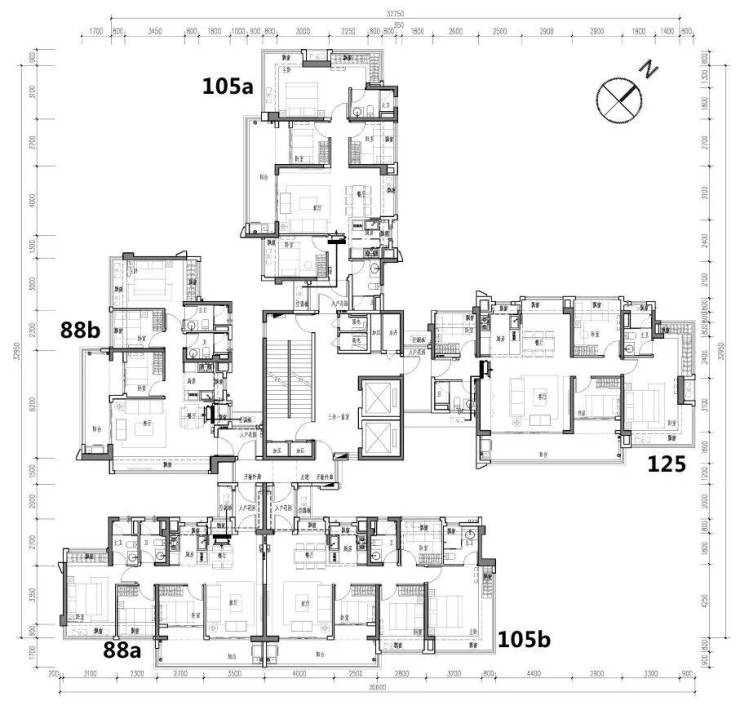 整个社区围合式布局,采用风车形楼型,取消北向户型,全南向排布,同等面积,朝向更佳;基本实现四开间以上,保证两个以上卧室南向,比同等南向产品品质感更强。