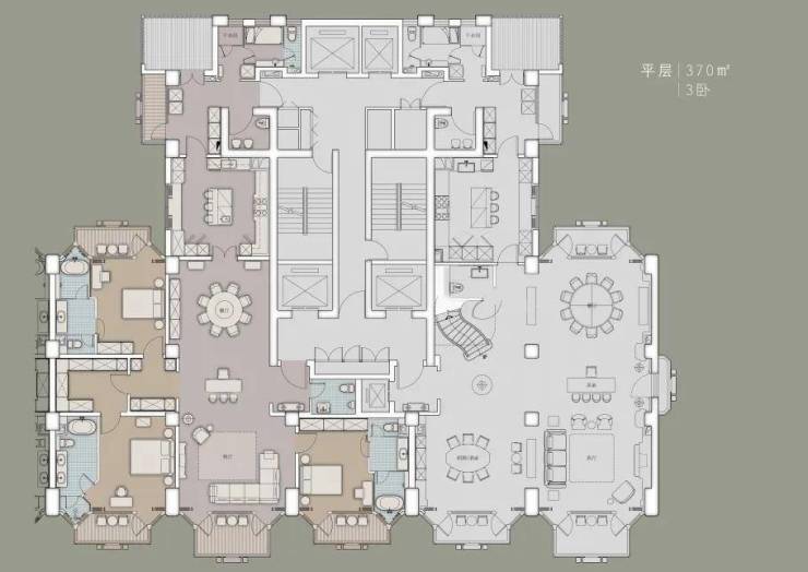 项目住宅部分全部大平层(复式)设计,单套面积约370-1500㎡,全部精装交付