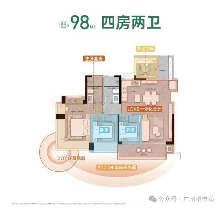 产品涵盖建面约88-108㎡三至四房,是科学城首个全面采用建筑新规设计的项目,据悉户型使用率接近100%。