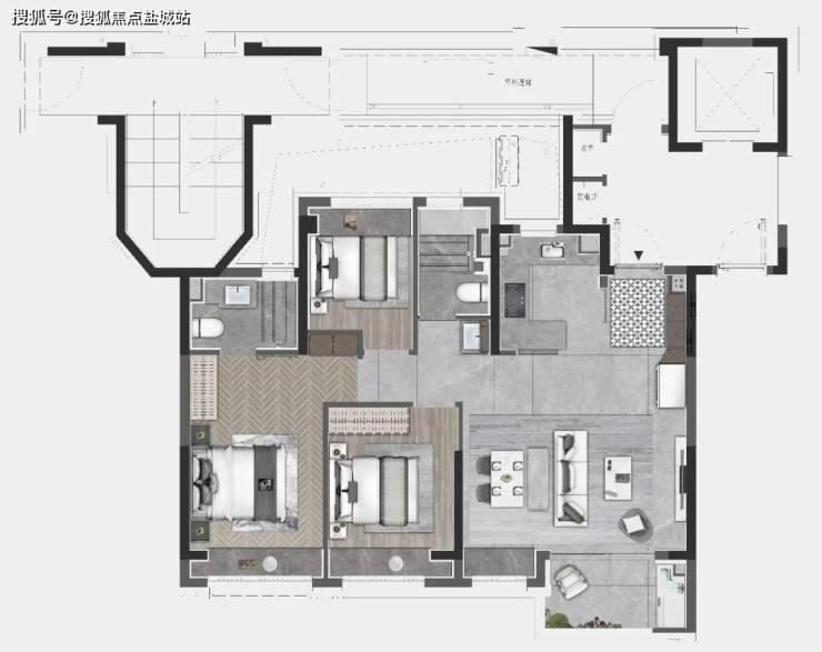其中 建面约103㎡产品,动静分离,入户便是敞亮大横厅! 开间尺度远远大于同级别产品!