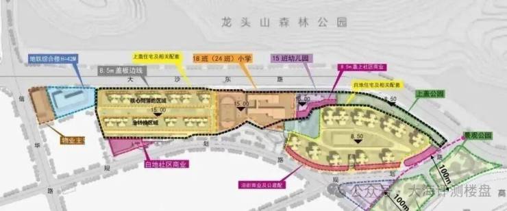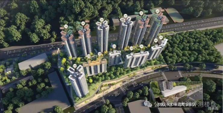 项目北邻占地约5000亩的龙头山森林公园,直线距离约100米,低楼层也有较好景观视野,且项目通过抬高约20米的设计,打造了4.5万方立体花园、空中会所等高阶配套。