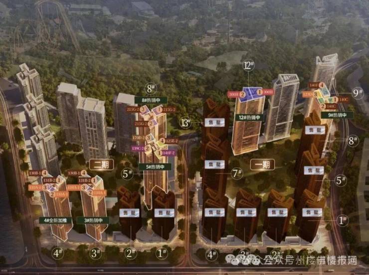 目前在售一期 9 栋、12 栋;二期在售 3 栋、5 栋、8 栋,全新加推 4 栋。