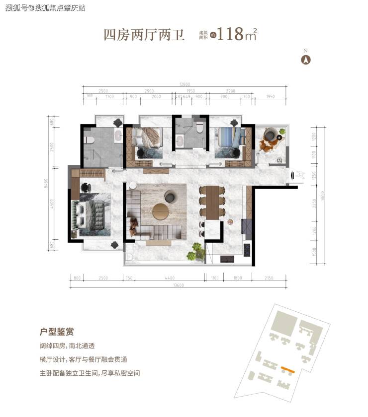 四房两厅两卫 建面约118.8㎡