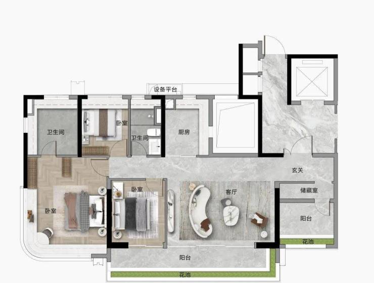 “宽幕视野” 南北通透双视野,主卧270°转角飘窗