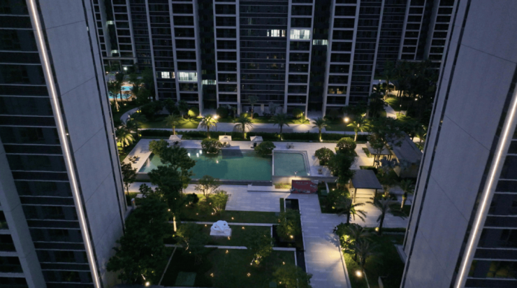 新加坡风格园林,以两轴一心多组团的规划布局,通过轴线设计营造出对称与秩序感。采用成品全冠移栽技术,力求“春有花、夏有荫、秋有果”,打造“城市花园”与“艺术空间”的双重居住体验。