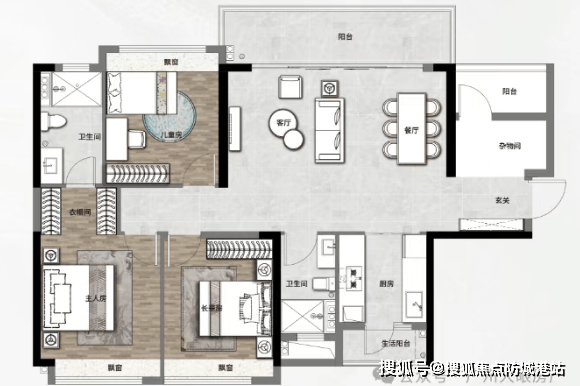 125㎡四房两厅两卫:该户型为区域内唯一的正南北横厅户型,客餐厅一体,明亮阔绰;双阳台南北对流,通风、采光充足;超6米超宽景观阳台,享受大夫山湖头排景观;全屋飘窗面积全赠送,双阳台面积半赠送,实用率超80%。