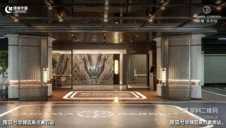 对家的归属感,在进入地下光厅的一瞬拉满。反光天幕与灯光相互倒映,极具温柔氛围;项目元素镂刻金属板、通透落地玻璃门、LOGO图案的质感地面,无一不在讲述专属于家的温暖安定。