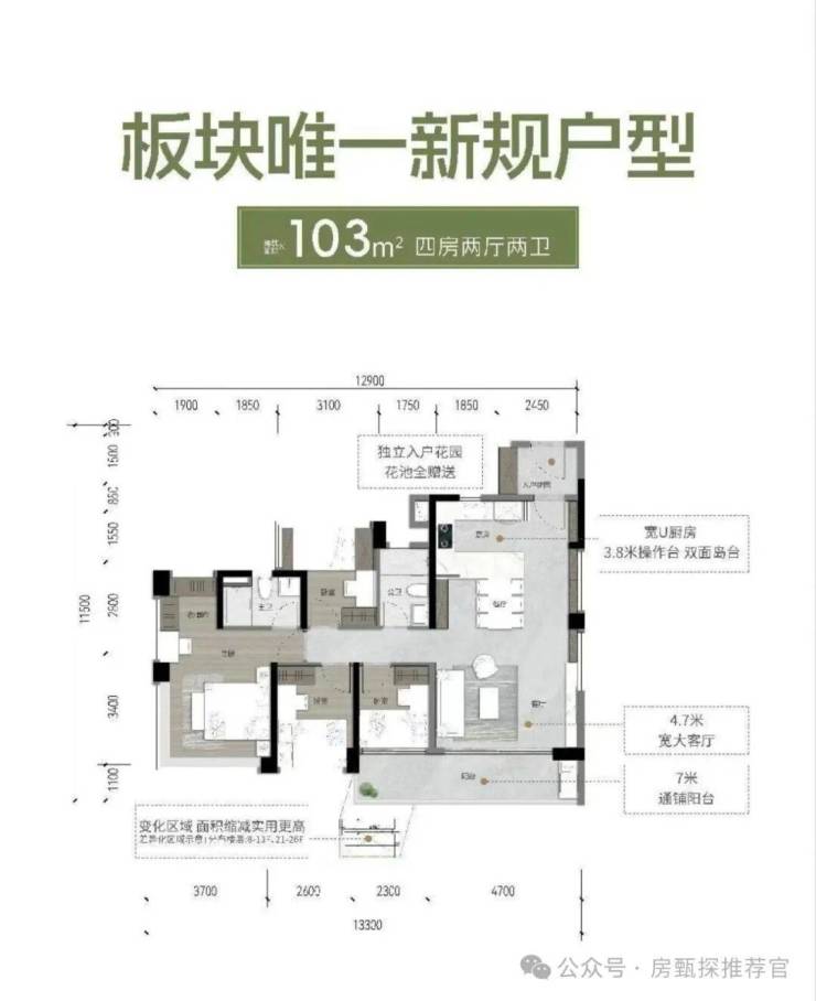 项目更是拿出了14种变异户型,部分阳台开间超过7米,匹配需求基础上,让人们真正找到“量身定制”的空间。