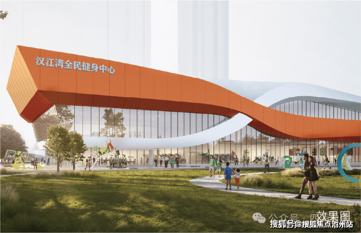 直线距离约100M即达约1.1万㎡汉江湾全民健身中心(预计年底投入使用):涵盖篮球、羽毛球、游泳等体育场馆。