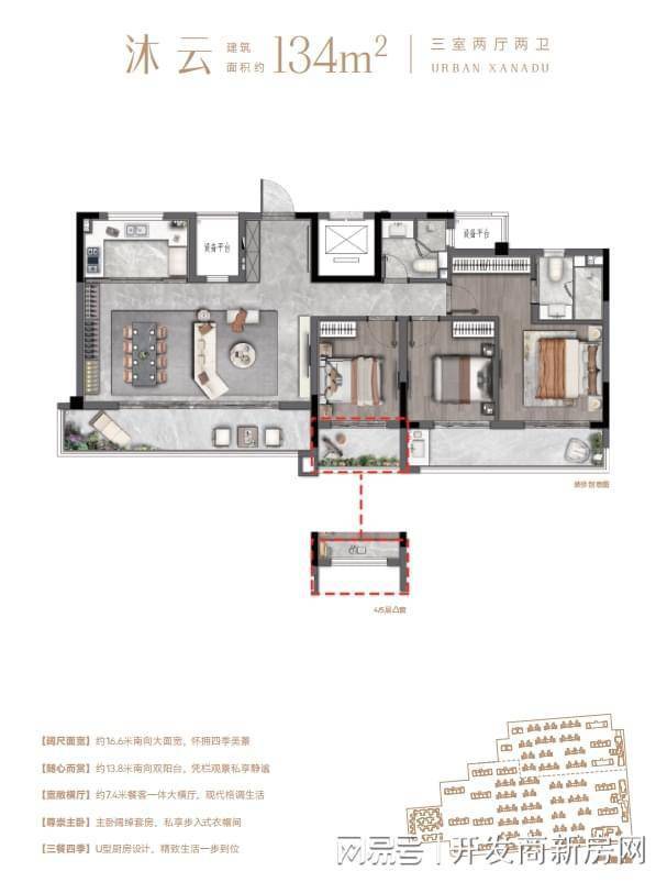 户型设计:云之湾的户型设计精致多样,无论是建筑面积约99-114㎡的精工平墅,还是约134-160㎡的臻稀叠墅,亦或是约215㎡的豪华居所,都能满足不同客户的居住需求。在这里,每一户都承载着人们对美好生活的向往和追求。