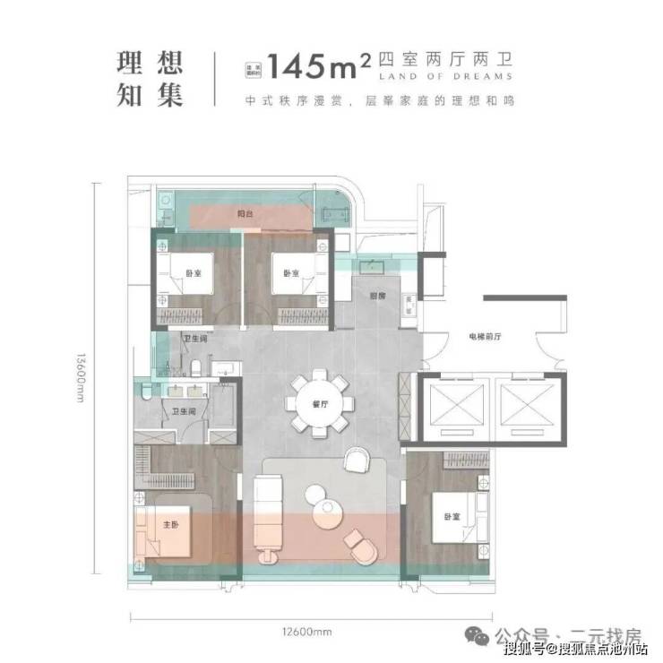3号楼靠近唐家墩路,共29层,也是整个地块唯一的30F以下的楼栋,也是2个单元,2梯2户,从西至东依次是172㎡、145㎡、146㎡、145㎡。