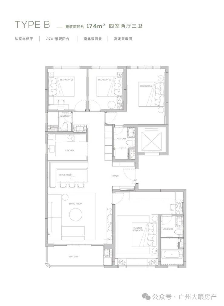 168㎡四叶草户型 四室两厅三卫