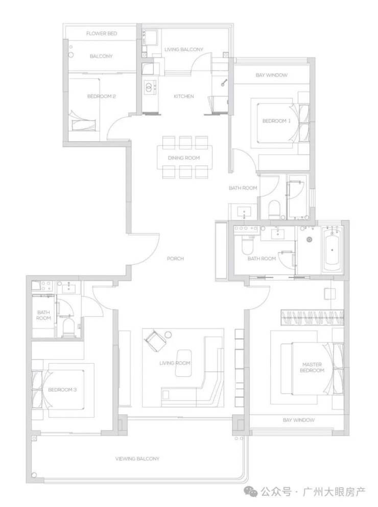 同时,弧形阳台的设计,也保留了完整的观景面,站在阳台上,你能够享受到270°环幕包裹的视野。