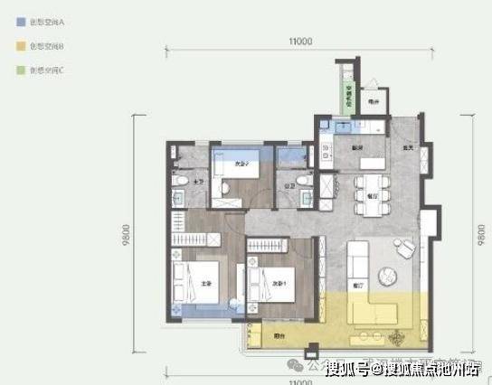 其中总高18层的均为2T4户的产品,中间户100m²三房,边户121-124m²四房;7层和11层为2T2户的洋房产品,分别为135m²四房和140m²四房。