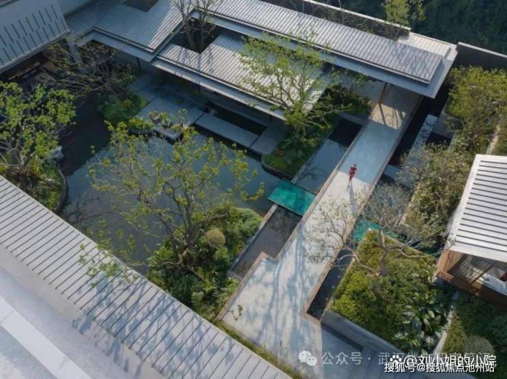 和一期比,二期的下沉庭院显得比较空旷,有很强的“减配”感,特别是中间一个简陋的亭子,比较尴尬和不搭,一期的“知音亭”高级多了。一期的下沉庭院的丰富程度,石材等元素的运用,以及展示区的层次感,都会更好。